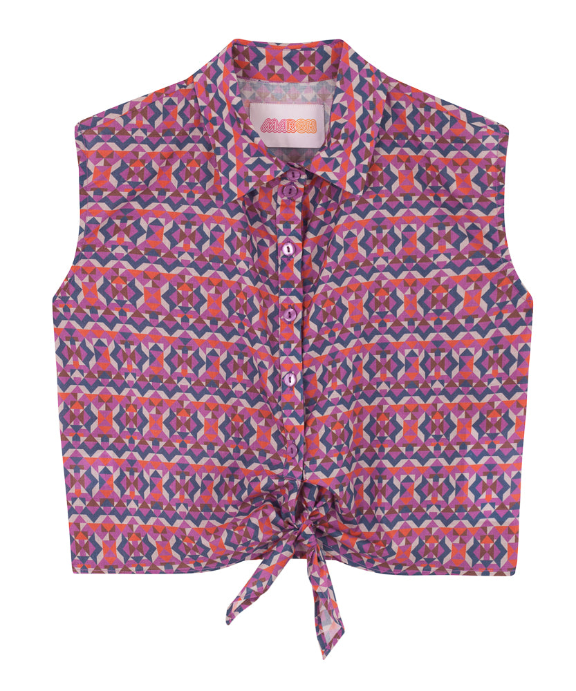 Cropped printed cotton sleeveless shirt. A colourful twist to your summer outfit! Fits true to...