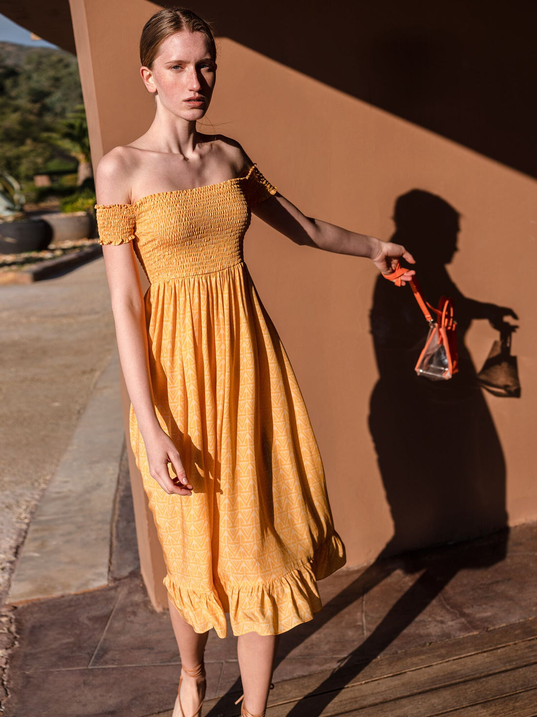 A playful off-shoulder dress. Fits true to size – choose your normal size Ruched bustier ...