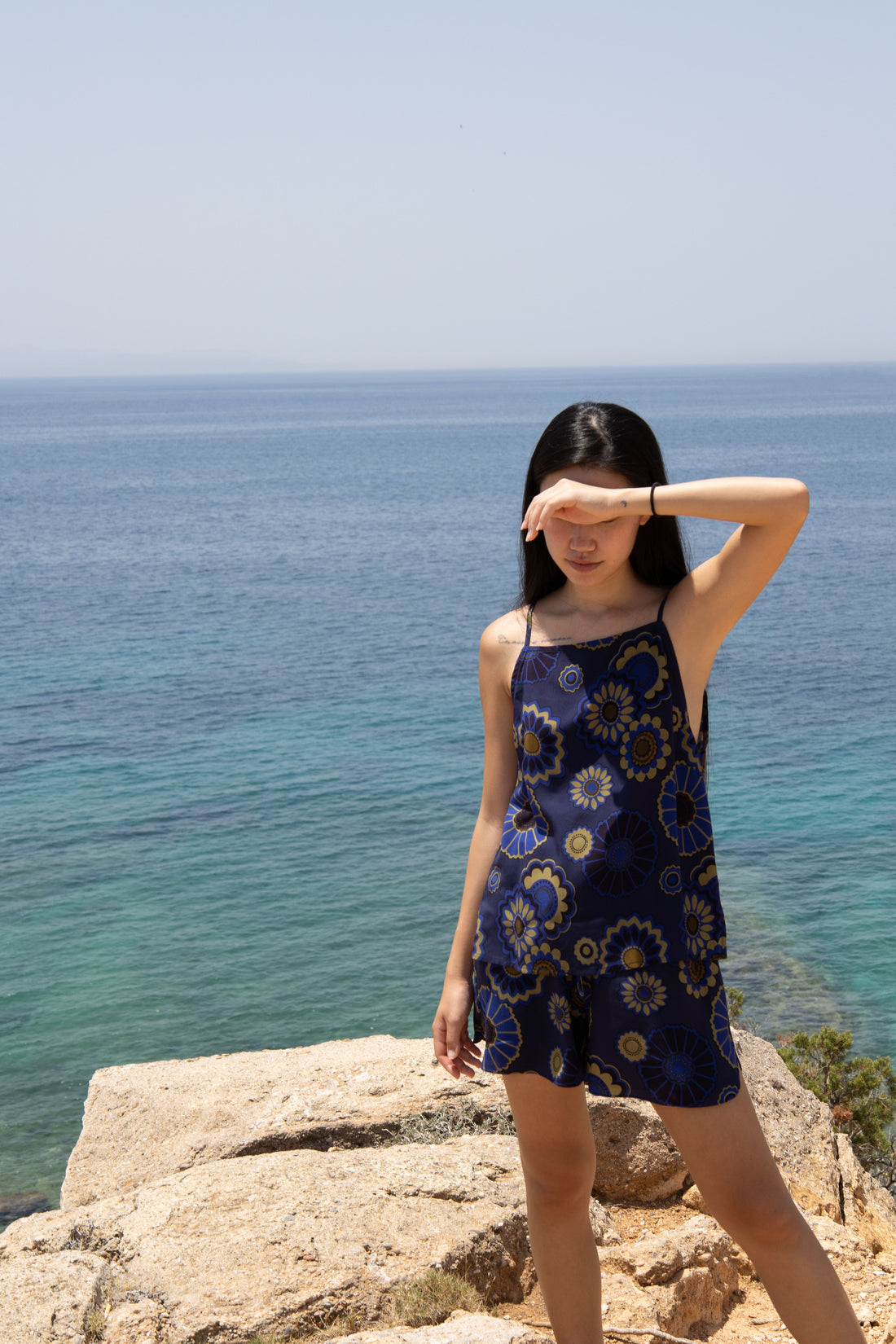 Printed cotton playsuit with waistband. Make a statement with this vibrant print. Fits true to...