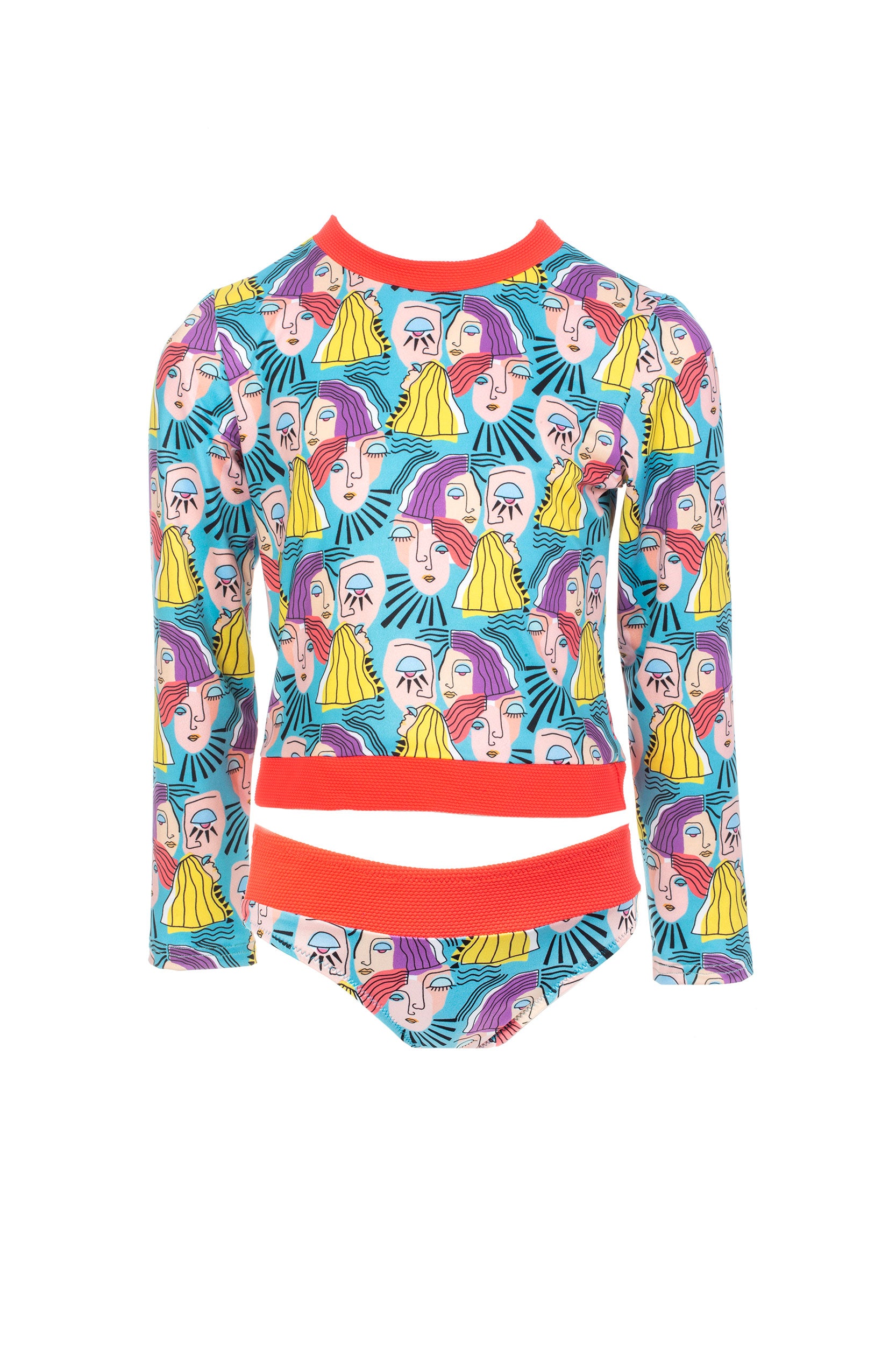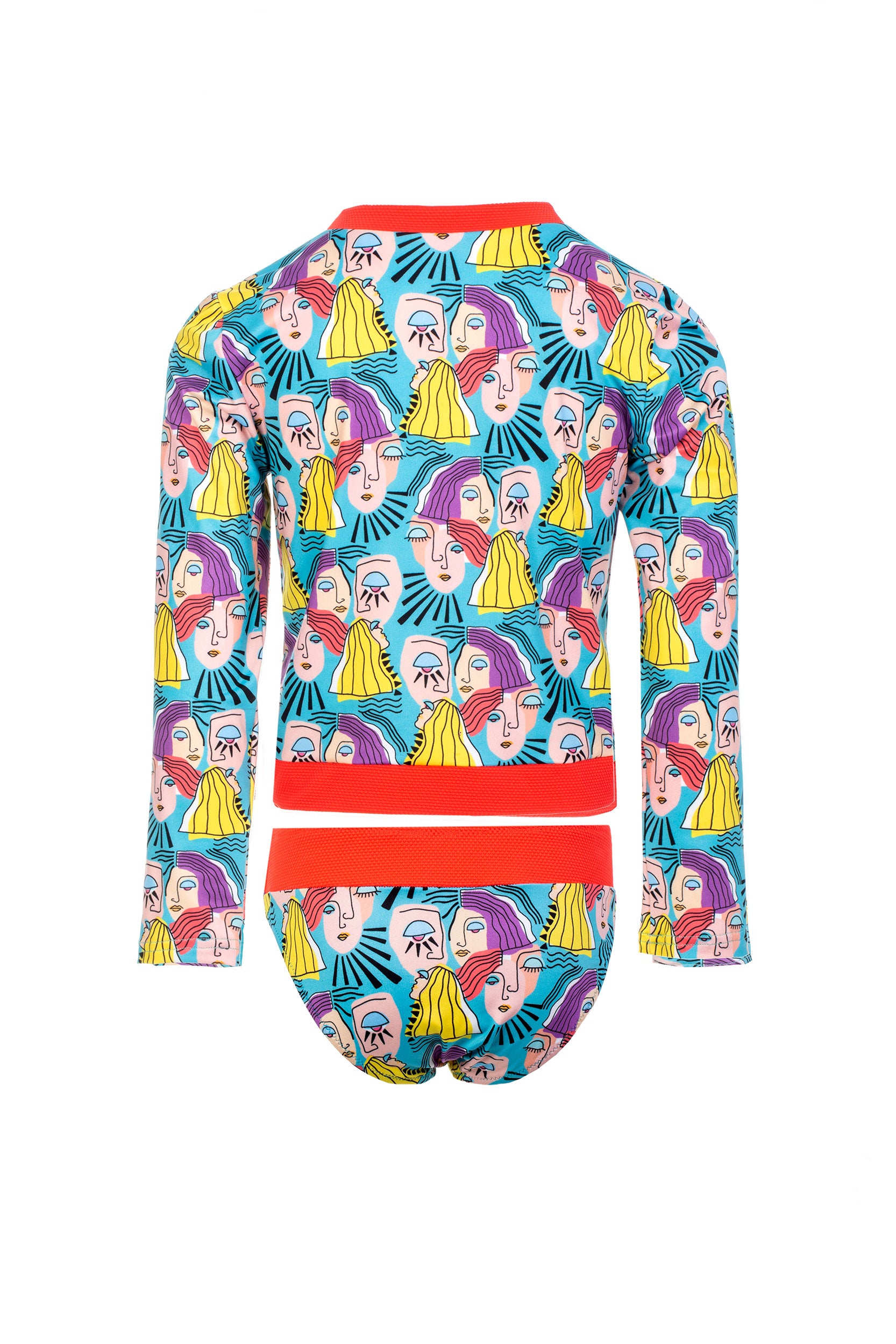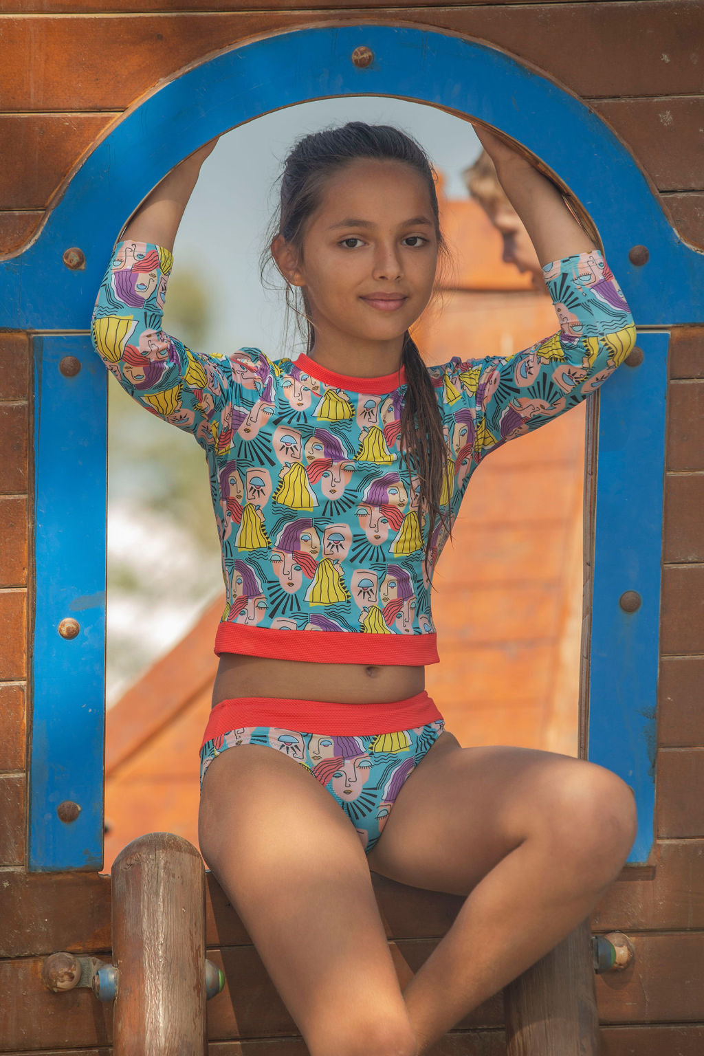 Sporty long-sleeve bikini cut from soft stretch fabric. The long sleeves provide extra sun protection for the little ones!