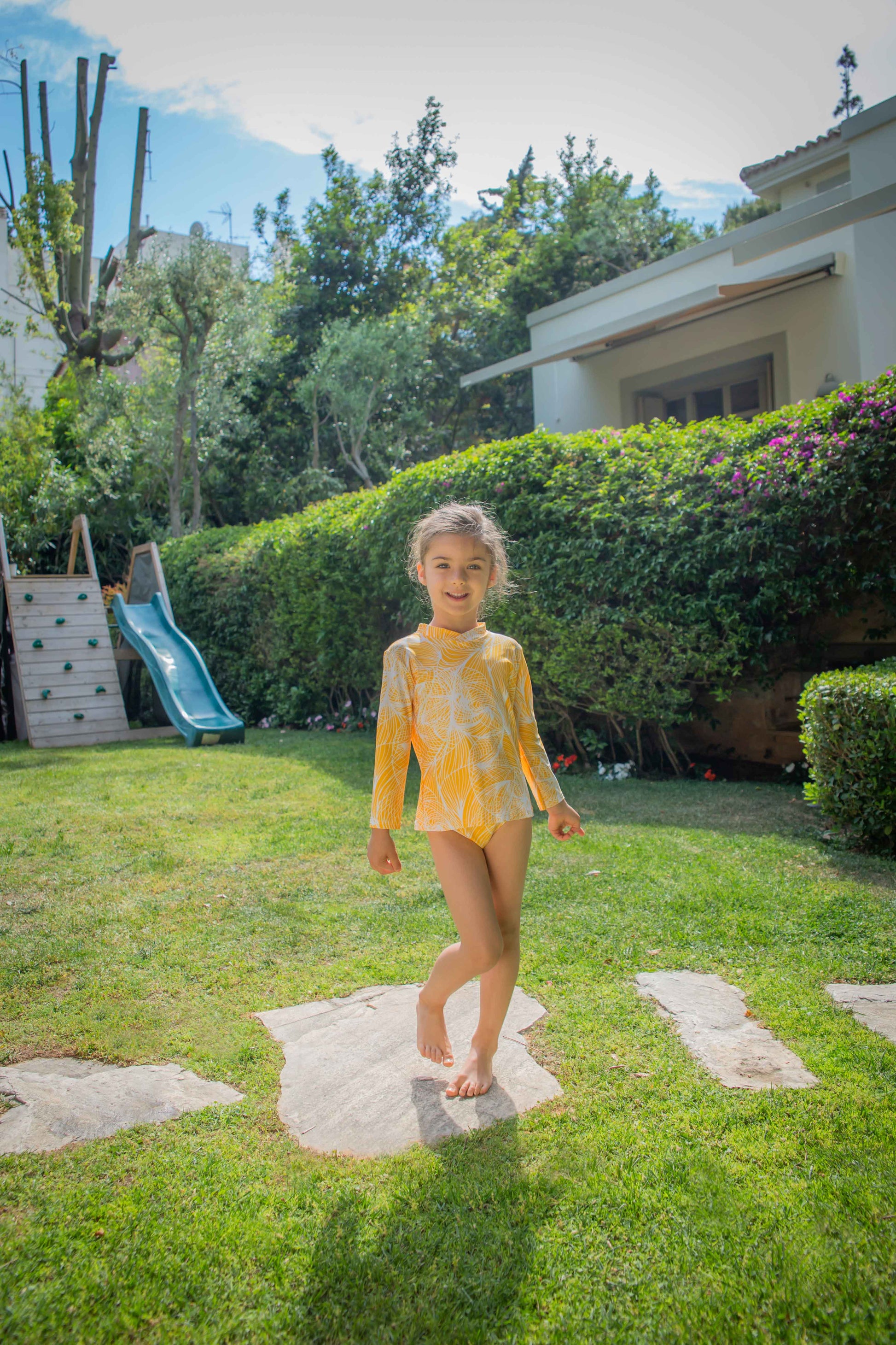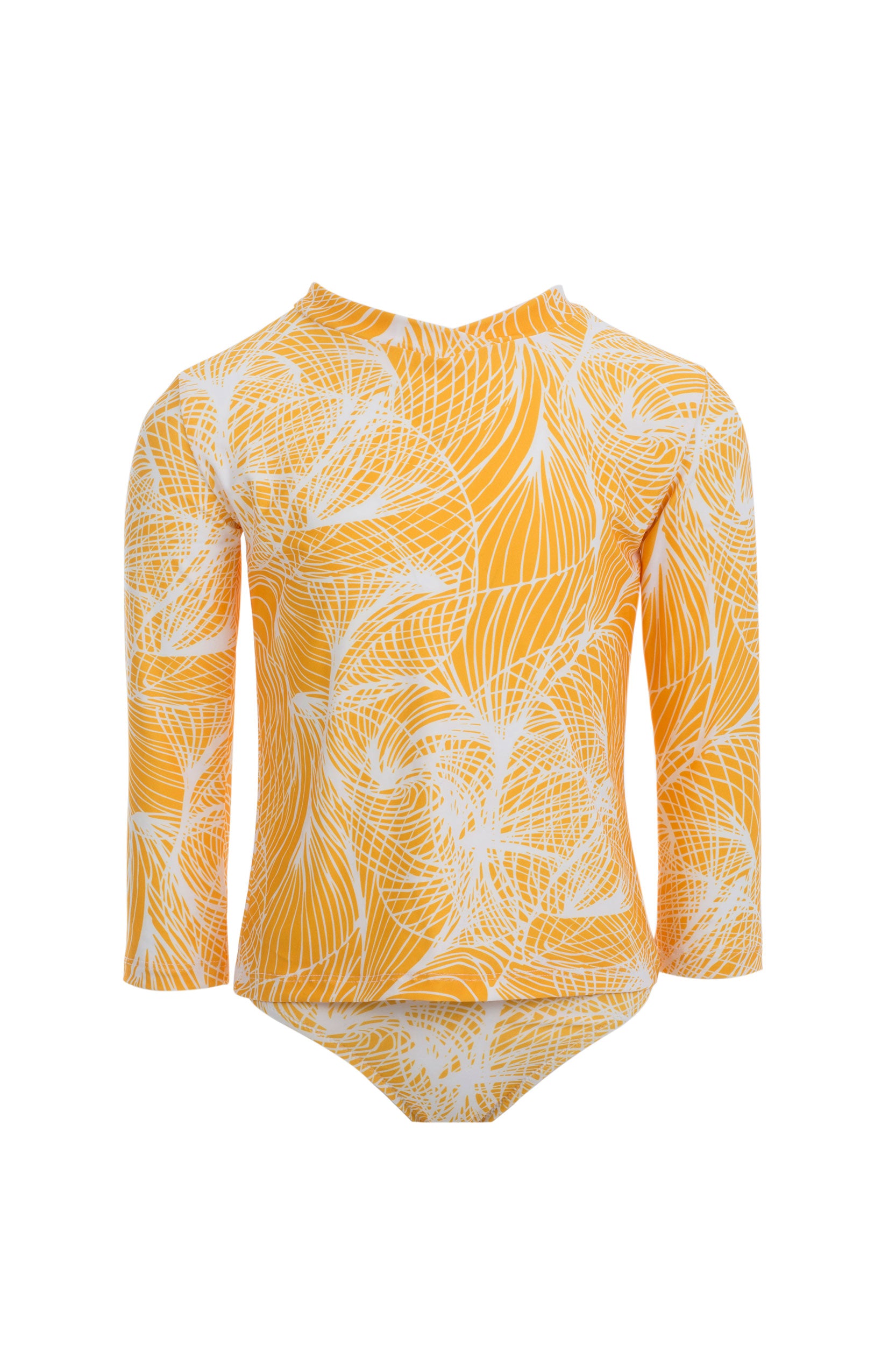 Sporty long-sleeve bikini cut from soft stretch fabric. The long sleeves provide extra sun protection for the little ones!