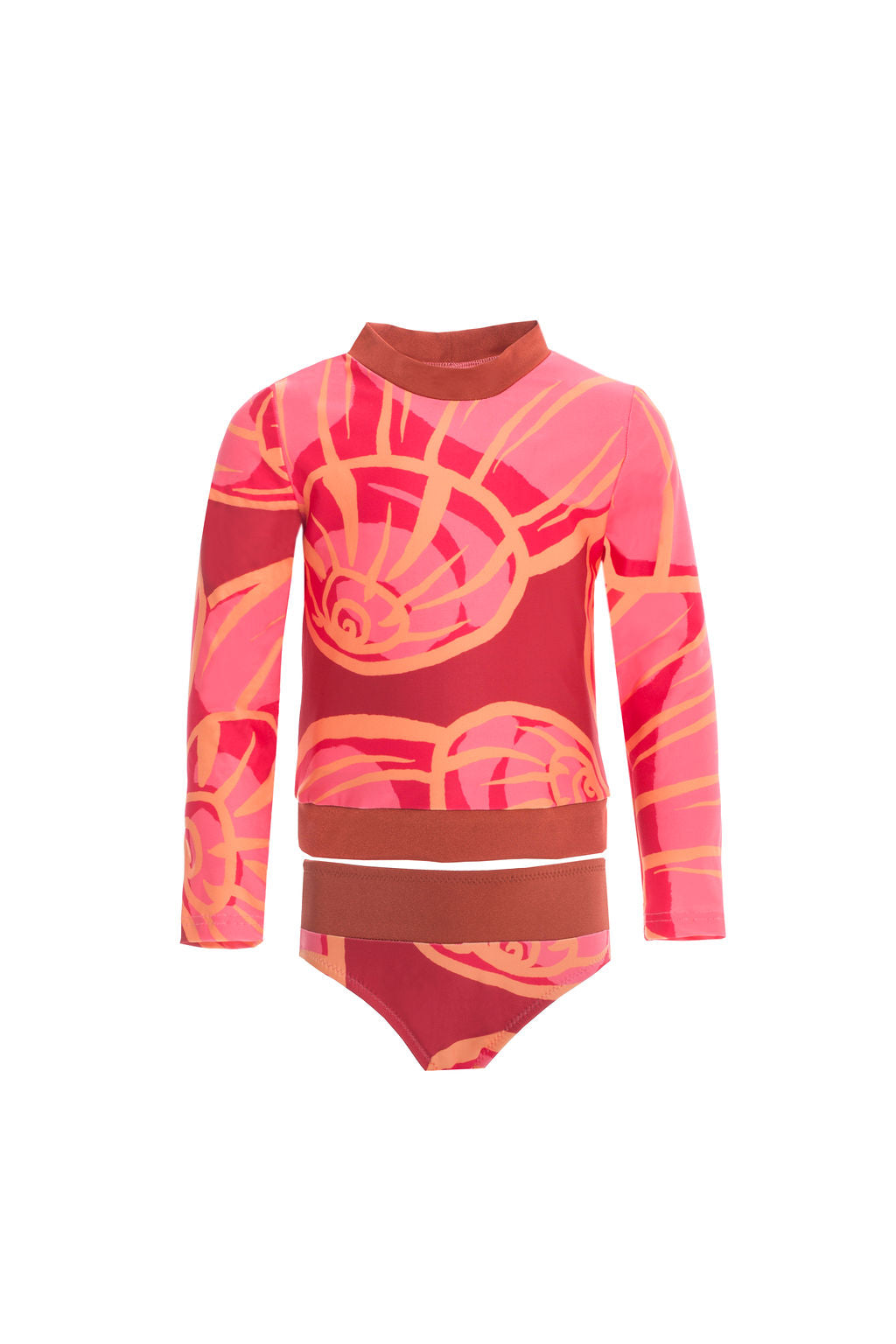 Sporty long-sleeve bikini cut from soft stretch fabric. The long sleeves provide extra sun protection for the little ones!