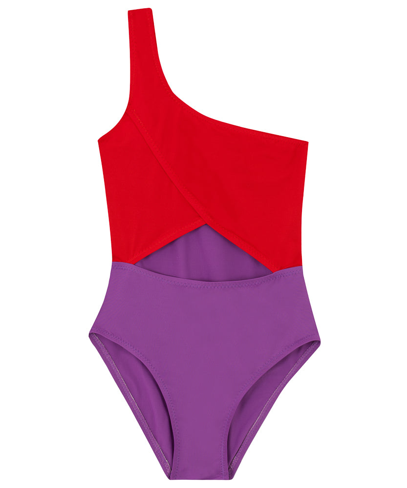 Kids One-Shoulder Onepiece | Red-Purple