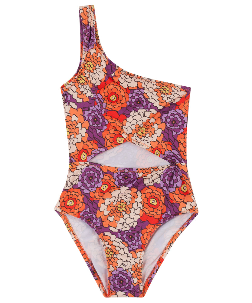 Kids One-Shoulder Onepiece | Floral Mosaic